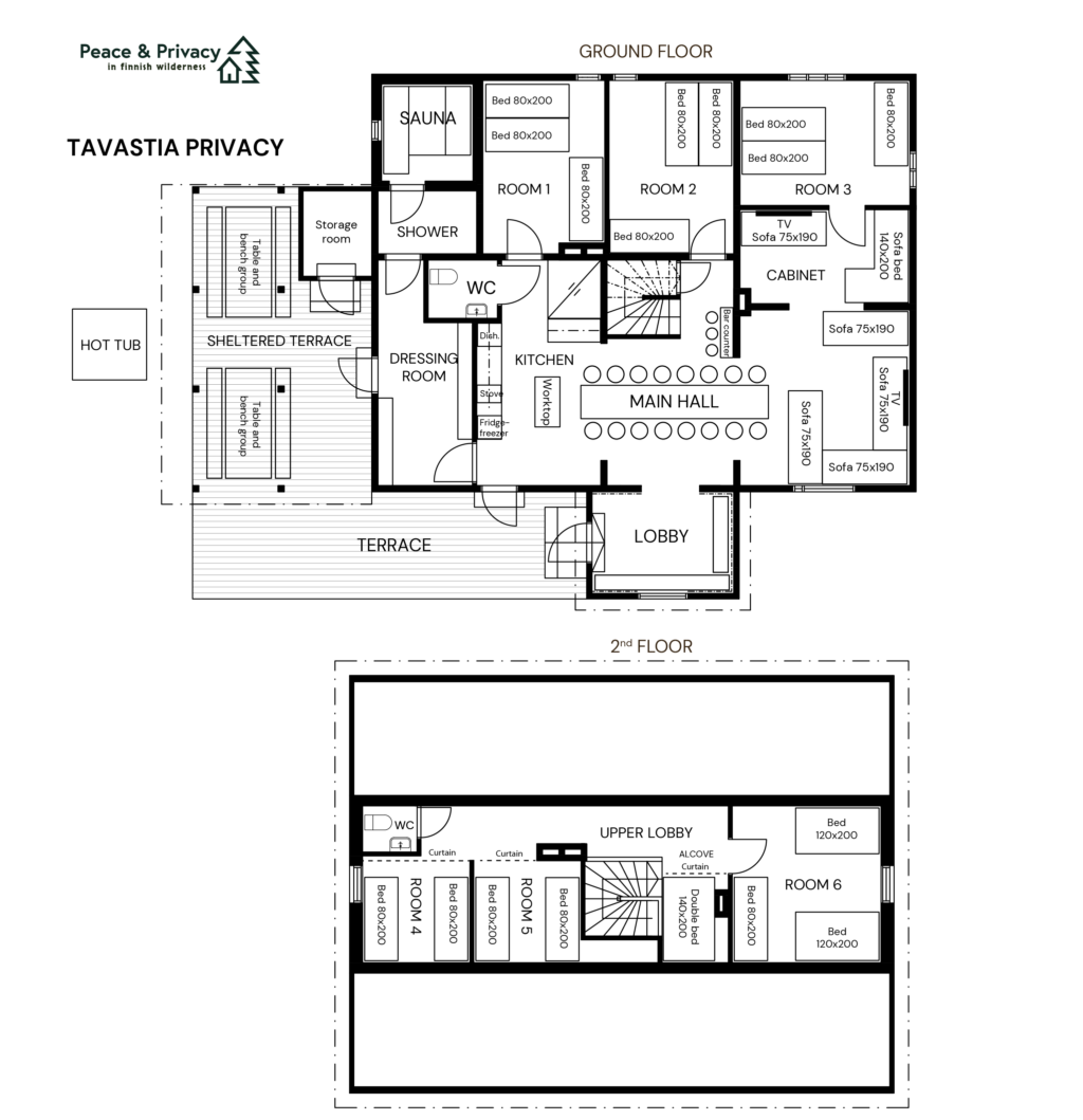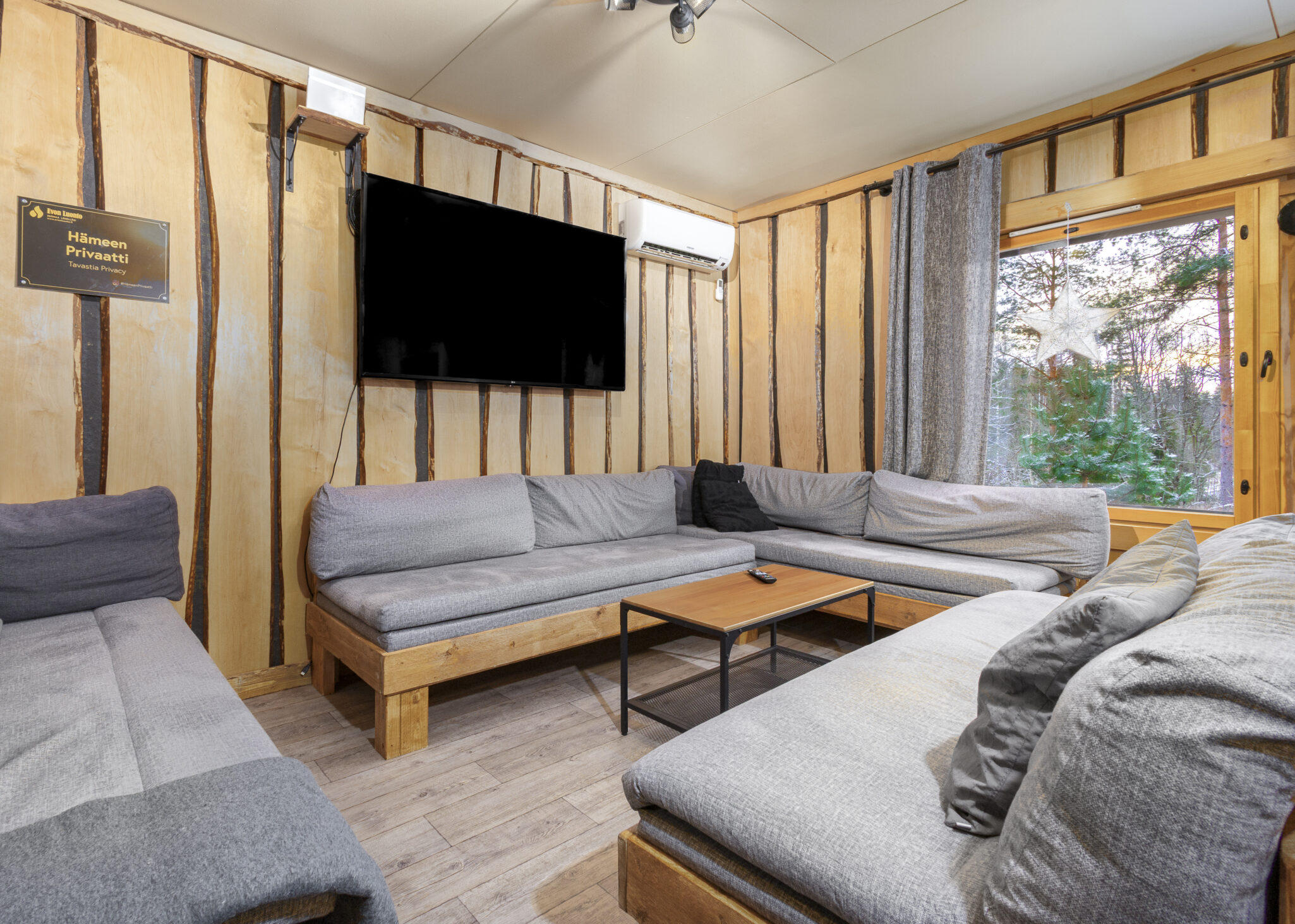 PRICES: The booking price of Tavastia Privacy includes the facilities of the converted multipurpose villa, covering approximately 200 square metres, including the use of the indoor sauna. Additional services available for order include the yard sauna, 1 or 2 hot tubs, the lean-to, final cleaning, bed linens pre-made or provided separately, and towels. We also offer programme services, dining services, and work services such as preparation of the saunas and hot tubs before the guests arrive. All additional services should be booked at least 14 days before arrival.