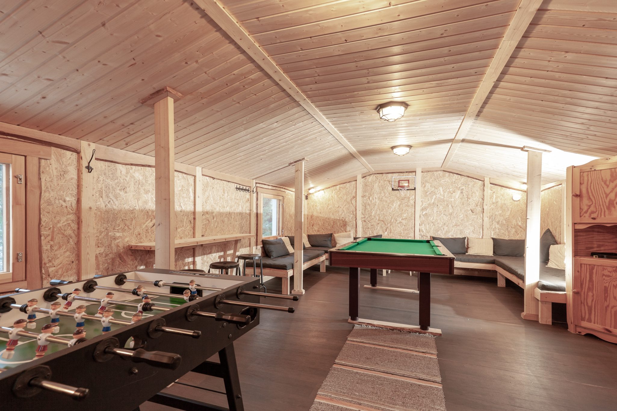 About 50 metres away from the main building is a roughly 35-square-metre game room, decorated in a wilderness style. We rent out the game room for an additional fee at the time of accommodation booking.