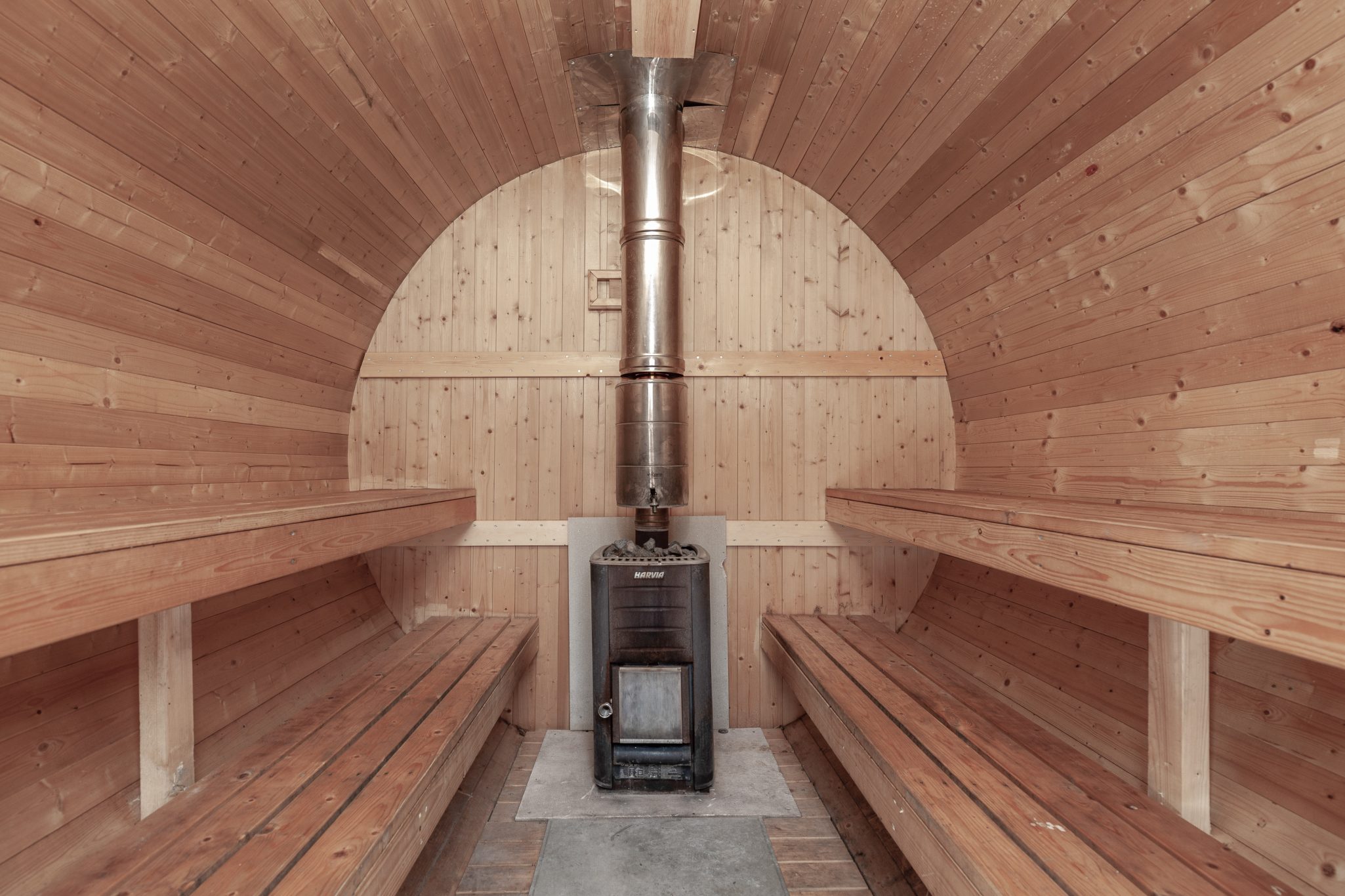 SAUNA, SHOWERS AND TOILETS: The indoor sauna can accommodate 8-10 people at a time. The shower room has 2 showers, and there is direct access from the dressing room to the terrace for cooling off. The villa has 3 toilets and an additional small shower room. On the terrace, there is a separately rentable wood-heated barrel sauna that can fit up to 8 people at once.